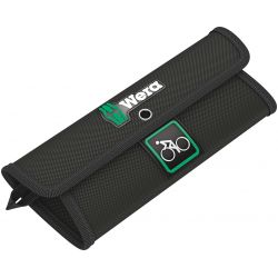 Jeu de clés à fourche 12 pièces Joker 6003 avec une version extrafine pour la taille 15. Comme les espaces de vissage deviennent de plus en plus exigus sur les vélos, il faut des outils qui permettent aux utilisateurs de bien travailler même dans ces situations. Les espaces de travail étroits nécessitent des points d'ancrage supplémentaires de l'outil. Est-il possible de modifier les clés mixtes de manière à augmenter leurs possibilités d'ancrage ? Le côté fourche coudé à 7,5° et la forme dodécagonale permettent de doubler les points d'ancrage. Lors de la rotation répétée à 180° de la clé dans l'axe longitudinal pendant le vissage, il existe quatre possibilités d'ancrage et les écrous ou têtes de vis peuvent être "agrippés" tous les 15°. La Joker 6003 avec la forme astucieuse de sa fourche augmente considérablement le spectre d'utilisation dans les espaces de montage exigus. La Joker 6003 trouve pour ainsi dire d'elle-même le point d'ancrage suivant à chaque rotation. Le côté œil, fin mais robuste, est coudé à 15° par rapport à l'axe de l'outil. Le traitement de surface haut de gamme assure une protection anticorrosion supérieure durable. Avec repéreur d'outils "Take it easy" : code couleur en fonction de la taille. Avec ses bandes à scratch au dos, l'étui Joker peut se fixer au mur, sur une étagère ou une servante d'atelier et est compatible avec le système Wera 2go.