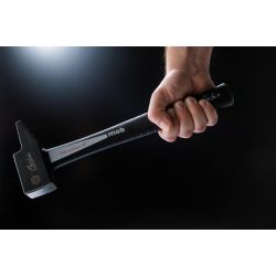 Utilisé au départ par les mécaniciens, qui recherchent à la fois de la puissance et de la précision. Tête en acier à forte teneur en carbone C45E. Tête forgée, avec traitement thermique par induction des surfaces travaillantes (54 HRC). Parties travaillantes finement polies.Peinture poudre époxydique par procédé électrostatique, suivi d'une cuisson au four. Chanfrein de 1/20e de la tête à 45°. Emmanchement réalisé par une machine hydraulique, un capteur d’effort mesure sur chaque produit unitairement la puissance d’emmanchement, puis un capteur de pression contrôle la mise en place de la résine. Les performances à l’arrachement sont beaucoup plus élevées que les normes et sont la marque de fabrique de MOB outillage. Manche composite Carbon quadri-matière, avec une âme incassable en fibre de verre et 2 barreaux de fibre de carbone, du polypropylène anti-vibration et une surinjection en élastomère pour le grip. Une frappe sèche et précise. Sans doute le meilleur marteau au monde.
