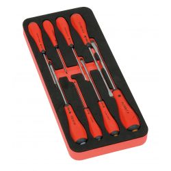 Dans module mousse bicolore 385 x 165 mm. Chaque outil a une place définie. Les outils manquants se repèrent en quelques secondes grâce au fond rouge. Mousse bi-colore haute densité, ne casse pas, ne retient pas l'humidité et résiste aux produits de l'atelier.