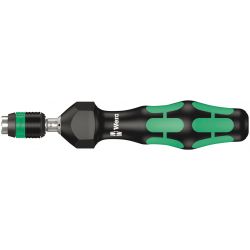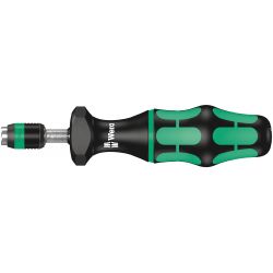 Tournevis dynamométrique Wera. Couple librement ajustable, conjugué à une précision maximale. Réglage aisé de la valeur de couple requise, sans outil spécifique. Échelle bien lisible. Avec signalisation par déclic. Technologie Rapidaptor à serrage rapide, pour un échange éclair des embouts. Couple de desserrage illimité afin de pouvoir libérer les vis bloquées. Manche Kraftform multicomposants associant zones dures et zones molles, permettant un travail à vive allure tout en ménageant la paume. Convient aux embouts à emmanchement hexagonal 1/4" répondant aux normes DIN ISO 1173-C 6,3 et E 6,3 (ISO 1173).