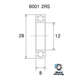 Roulement à billes BLACKBEARING B3 - 6001 - 2RS vendu à l'unité.