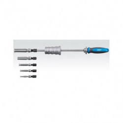 livré avec 5 douilles : de 7 à 8 mm / de 10 à 12 mm / de 12 à 15 mm / de 17 à 20 mm / de 22 à 28 mm